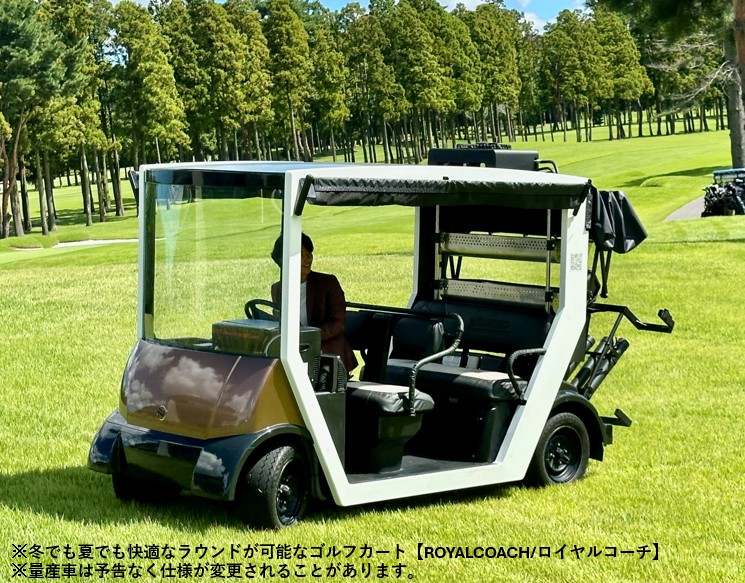 日本国内外では、さまざまな富裕層向けビジネスが展開されており、ゴルフ業界もその例外ではありません。そこで当社は、高級自動車に搭載される機能をゴルフカートにも応用し、快適性とラグジュアリー感を堪能できるゴルフカート【ロイヤルコーチ】を開発しました。
